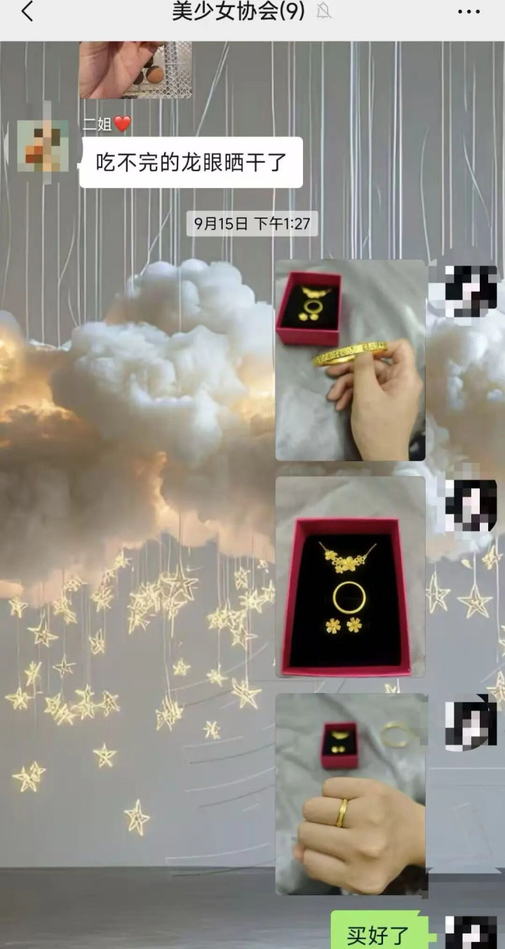 经查,9月15日陈女士在购买金饰后,在家族群“美少女协会”中分享照片和幸福,没想到其堂嫂陈某芳却盯上了自己的金手镯。
